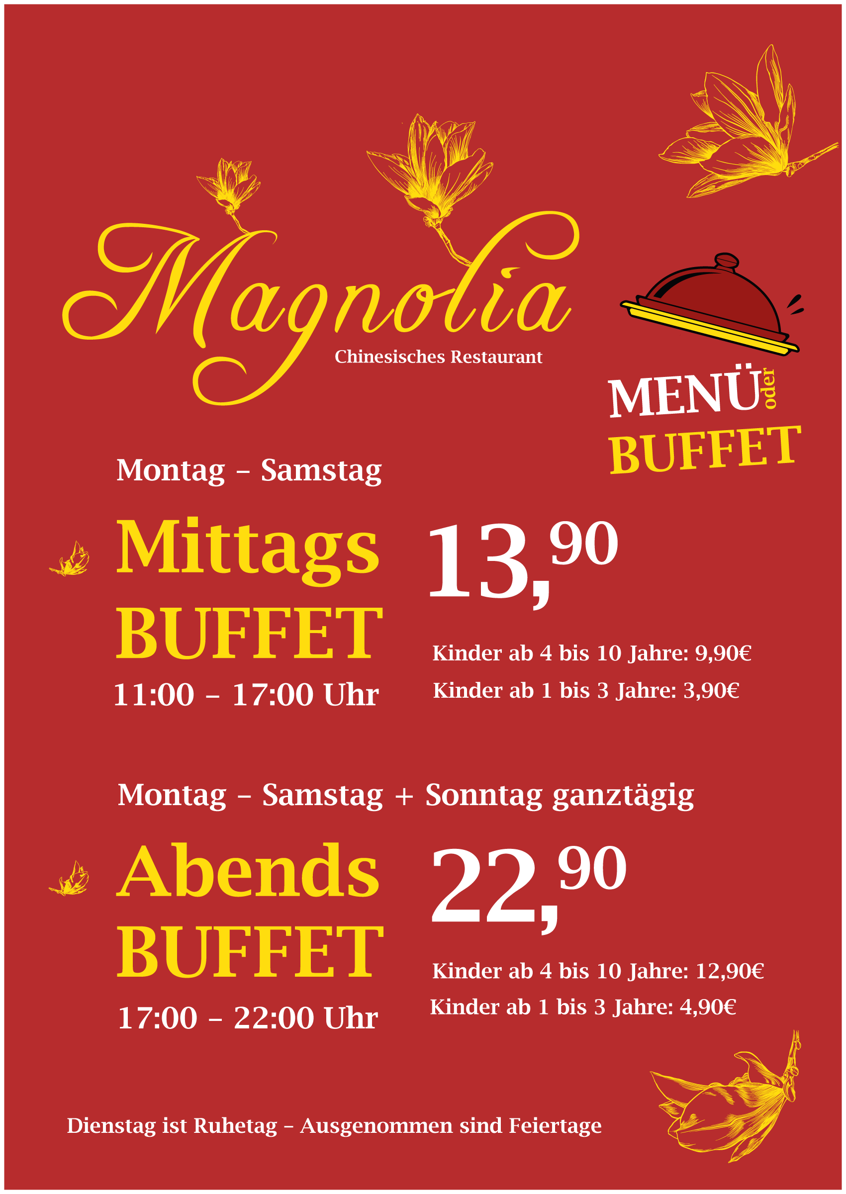 Genießen Sie bei uns die Vielfalt der chinesischen Küche, zubereitet mit frischen Zutaten und traditionellen Rezepten. Ob für ein entspanntes Mittagessen, ein romantisches Dinner oder einen geselligen Abend mit Freunden – im Magnolia Celle erleben Sie köstliche Gerichte in gemütlicher Atmosphäre.